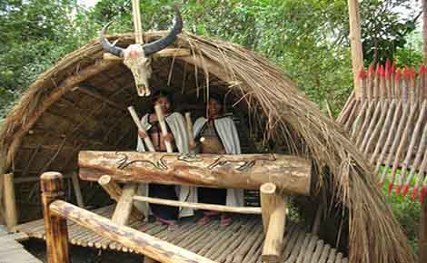 在這里,多種民族的民風(fēng)民情交融一起,讓人大飽眼福:既有蛋家居民的水上生活及男婚女嫁的本土習(xí)俗,也有布朗族人的“舔火炭”、“自焚”絕技。還有土人的樹上的生活方式,土家人的“食土食草”、“喝生血”、“活吃動(dòng)物”的野性,原始森林部落的“水牢”“旱牢”酷刑,這些神秘而奇特的稀有民族生存和生活方式,都將帶給你強(qiáng)烈的視覺刺激和心靈震撼。