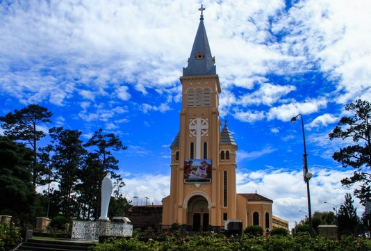 芽莊教堂是一座哥特式教堂,建于1928至1933年。教堂有鐘塔和美如錦花、繪滿《圣經(jīng)》故事的天窗玻璃,石頭建造的內(nèi)部墻壁給人清涼之意。教堂外是繁雜吵嚷的街頭,教堂內(nèi)則靜謐平和,儼然另一個世界。教堂每天早晚舉行彌撒活動,常能在門外聽見誦經(jīng)聲或唱詩班美如天籟的歌聲。