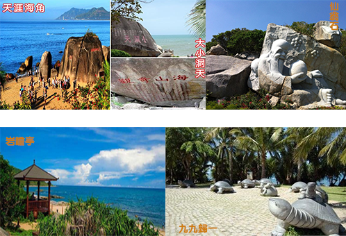 海山奇觀:山、海、林泉是構(gòu)成一個旅游名勝必不可少的條件。這里,崖州灣弧弦百里,碧波萬傾;鰲山云深林翠,巖奇洞幽;海岸遍布神工鬼斧,肖形狀物之大小磊群;山海之間宛如一幅古樸雄壯的長卷畫圖。