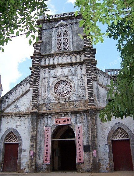 潿洲島天主教堂是法國文藝復興時期哥特式建筑,整個建筑群由教堂、男女修道院、醫(yī)院、神父樓、育嬰室等組成。當時還沒有鋼筋水泥,建筑材料全取自島上的珊瑚、巖石、石灰拌海石花及竹木建造。一百多年來,潿洲島天主教堂雖經(jīng)歷了多少風雨的沖刷,仍保存完好。