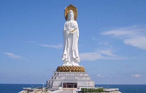 南山寺地處海南省三亞市西南40公里的南山腳下,是中國最南端的寺廟,也是建國后國務(wù)院首次批準(zhǔn)的新建的最年輕的寺廟。站在寺前的觀海平臺遠(yuǎn)眺,依稀可見幾座大山在云霧中若隱若現(xiàn), 南山佛教文化苑。這時你會感到李白“忽聞海上有仙山,山在虛無縹緲間”的詩句用在此處再合適不過。海面上幾葉輕舟在微波中蕩漾,描繪出一幅蓬萊仙境的圖案.而南山寺最著名的是創(chuàng)造世界之最,高達(dá)108米,造價6億人民幣的海上觀音,還有價值1.92億元人民幣的世界手工藝之一絕的國寶——世界首尊金玉觀世音菩薩塑像,因其奇絕的藝術(shù)魅力和觀世音菩薩與南山的殊緣吸引著八方游人.南山寺無處不在顯示著博大精深的佛教文化和中國傳統(tǒng)文化,是世所罕見,震驚世界的佛教名山勝地。