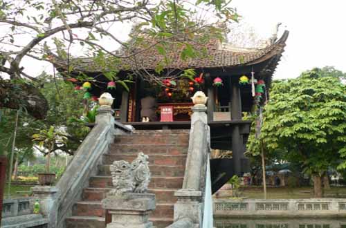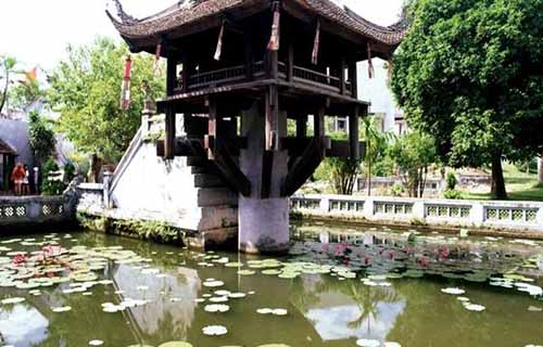 獨(dú)柱寺是越南獨(dú)具一格的古跡之一, 位于河內(nèi)巴亭廣場(chǎng)西南,建于1049年的李朝。因該寺建在靈沼池中一根大石柱上而得名。靈沼池為方形,池周磚砌欄桿。寺為木結(jié)構(gòu),亦方形,每邊 3 米,四面帶廊。據(jù)傳李太宗夢(mèng)見觀音菩薩手托嬰兒,立于水池蓮花臺(tái)上,不久得子,乃下令仿出水蓮花建寺,故獨(dú)柱寺似出水蓮花。