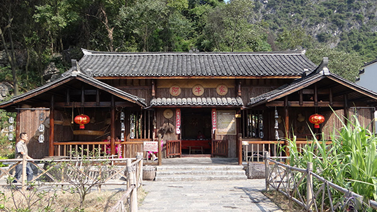 阿牛家:阿牛哥的家是一棟典型的壯家干欄式茅屋。所謂干欄式民居是由2~3層構(gòu)成,一層架空,用于養(yǎng)牛、養(yǎng)豬;二層住人;三層存放糧食。阿牛哥是窮漁家,以捕魚為生,故而一層低矮,也沒有第三層。干欄式民居是我國南方山區(qū)普遍采用的一種建筑形式,它可以防蛇,又干燥又涼爽。